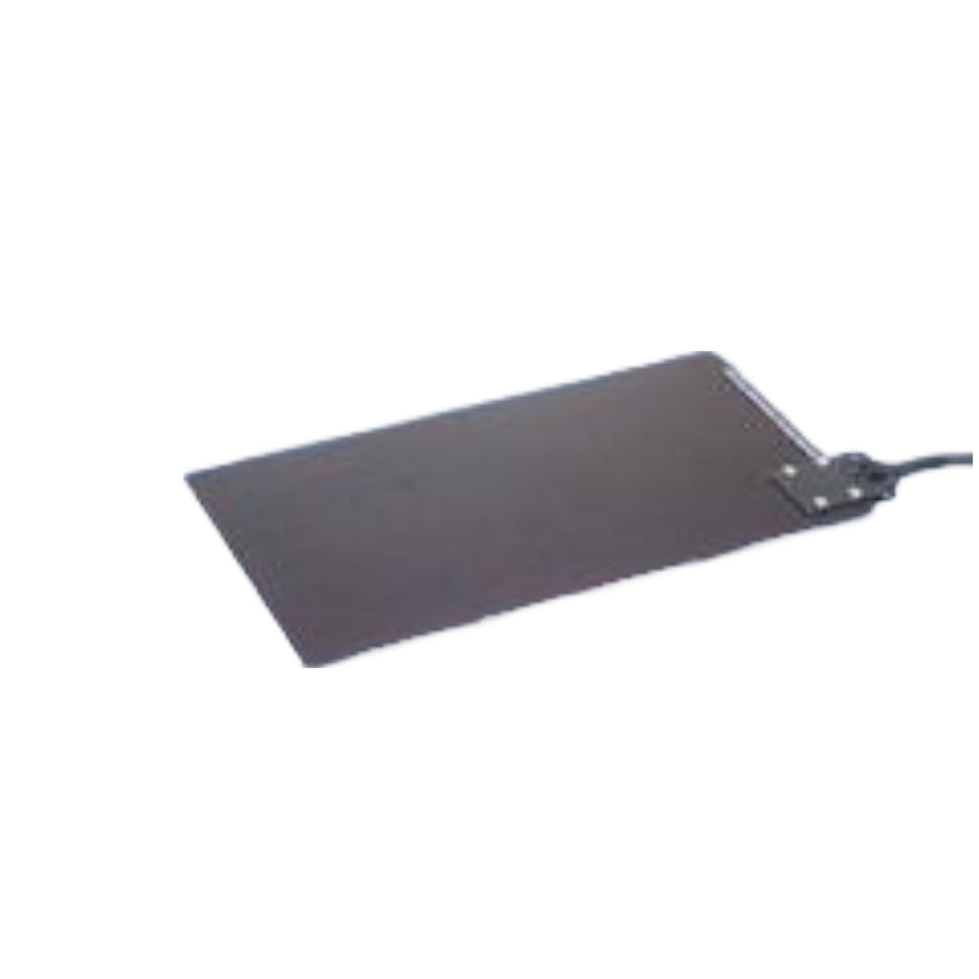Optional direct current heating plate for small rodents(mice and rats). Standard plate is black anodized aluminum and measures 4 3/8W" x 8.5" with small feet giving it an elevation of 1/4" above the surface it sits on, such as a table or stereotaxic stage. It is easily cleaned with alcohol.